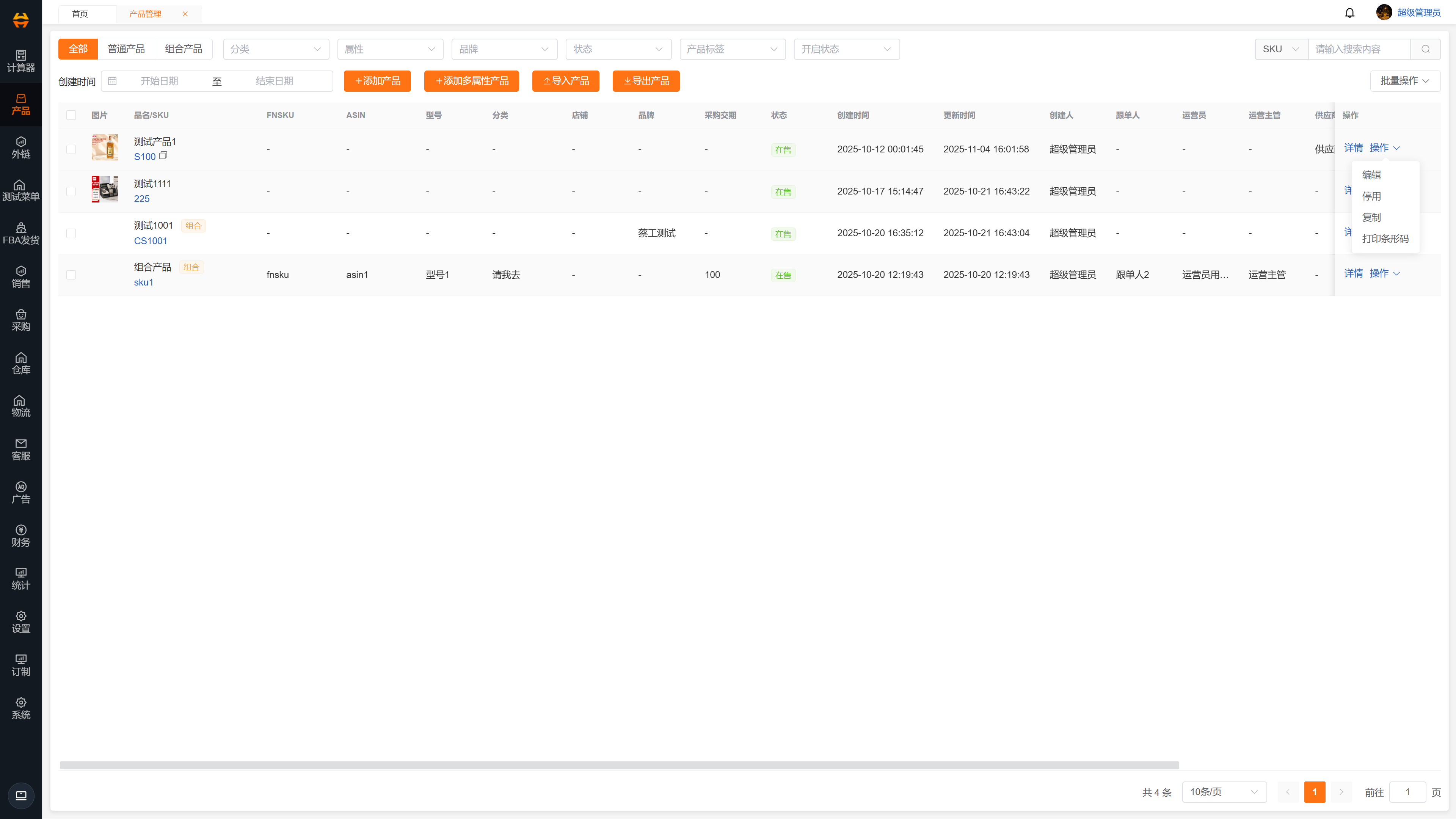 - 2025.09:参与亚马逊ERP管理系统,主要业务有新品开发、产品管理、采购管理、仓库管理、FBA发货管理、物流管理、财务管理、系统设置等