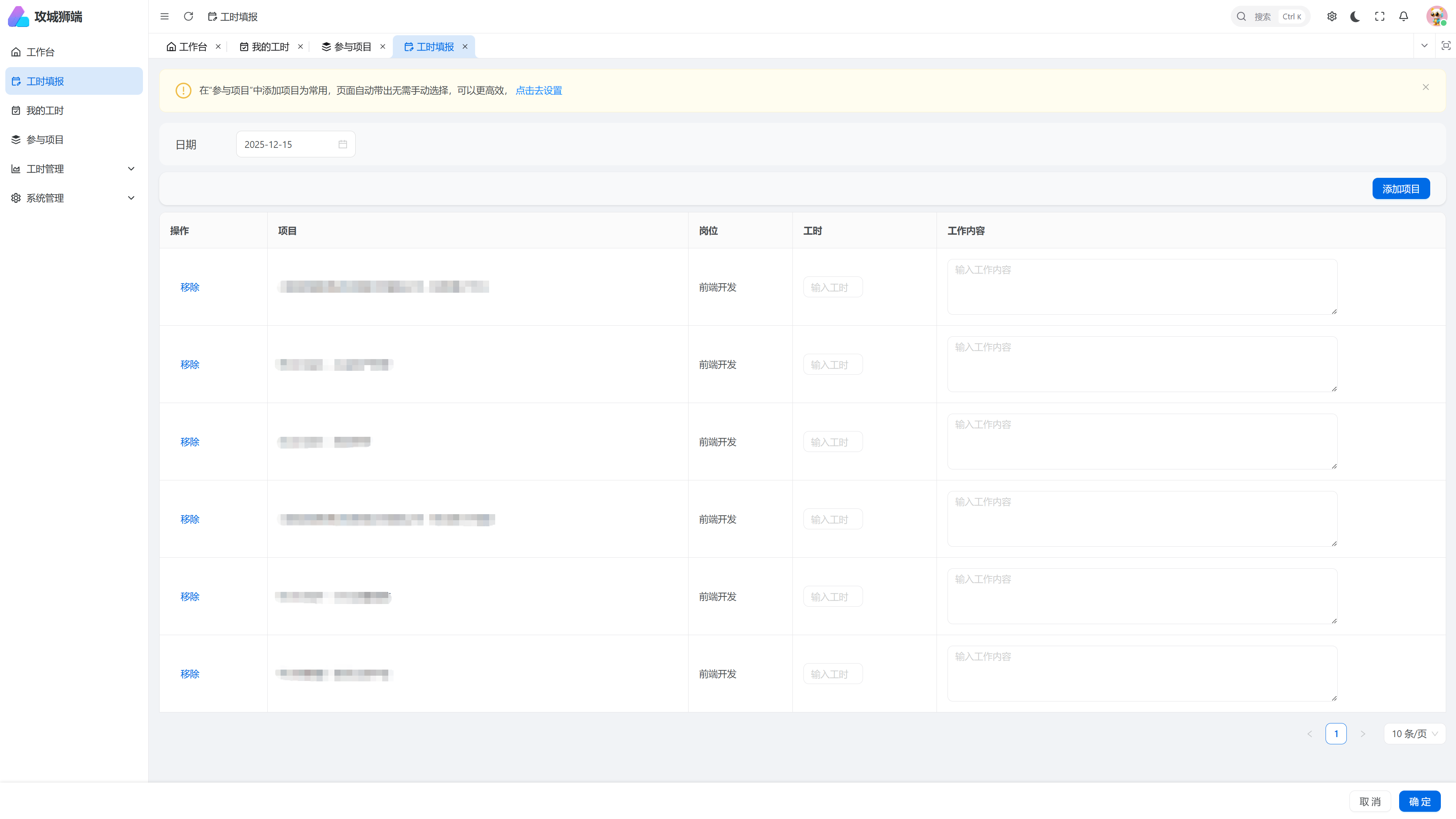 - 2025.04:参与工时管理系统,主要业务有项目管理、租户管理、用户管理、工时管理、工时统计报告等